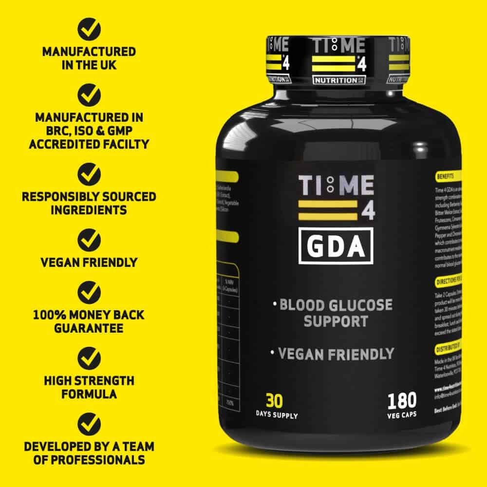 MANUFACTURED IN THE UK – Our Time 4 GDA – Glucose Disposal Agent was developed in the UK by a team of professionals from the fields of nutrition, biochemistry & exercise with decades of industry experience & is manufactured in a BRC, ISO & GMP accredited facility to give you complete peace of mind. We employ an evidence-based approach to all our products & provide access to peer-reviewed research papers from some of the leading scientific journals to support their use. A full explanation of all technical terminology is provided so that you fully understand exactly what is contained within our supplements & the potential benefits for health & performance they may provide you with. While many of our products are aimed at increasing muscle size & strength & reducing body fat, we also understand how important your health is & have developed various supplements that promote general health & well-being to enable you to become the best you can be.